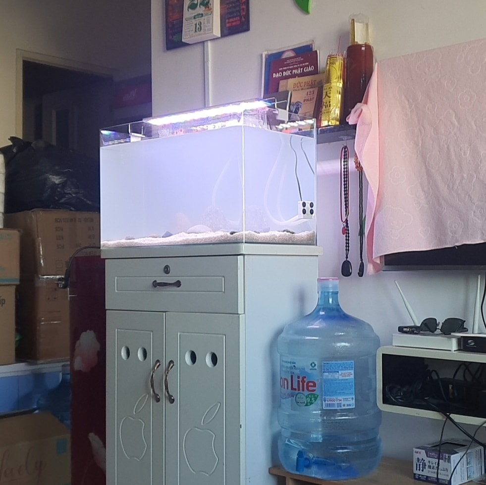 Cát cần được rửa sạch (giống khi vo gạo)khoảng 3-5 lần để sạch bụi và khi đó cho nước vào, chờ lắng nước sẽ trong lại.