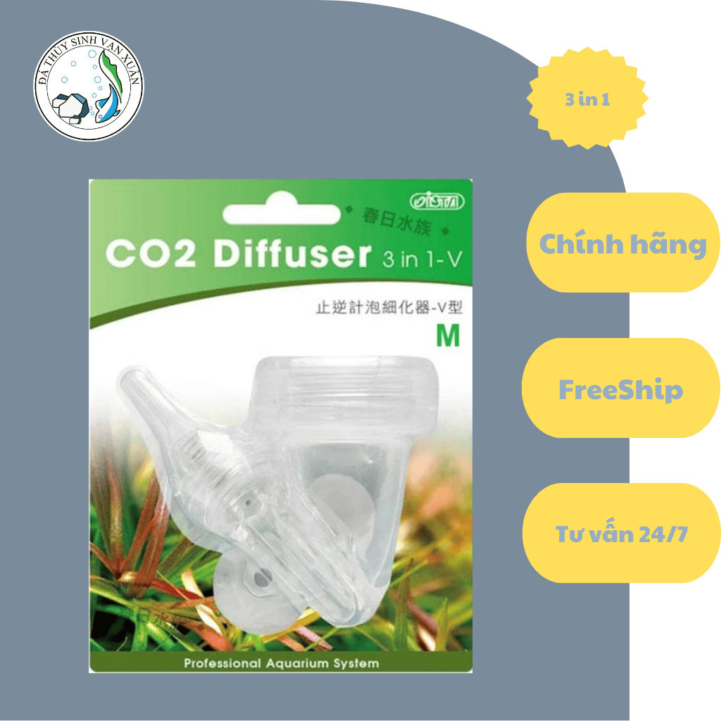 ISTA - Diffuser CO2 3 in 1 Compact V là đầu sủi CO2 cao cấp giúp hoà tan khí CO2 từ bình khí nén vào trong hồ cá thủy sinh. ISTA - Cốc sủi có thiết kế chất liệu Arcylic trong suốt tích hợp 3 chức năng sủi, đếm giọt và van 1 chiều trong 1 sản phẩm, đồng thời đầu sủi sử dụng công nghệ ép gốm tiên tiến, giúp khí CO2 thoát ra mịn đều tăng lượng hòa tan tối đa tránh thất thoát khí. Ngoài ra có thể tháo lắp giúp dễ dàng vệ sinh khi bộ sủi bị dơ hoặc cần thay thế gốm sủi bên trong thích hợp sử dụng cho hồ từ 100 cm trở xuống.