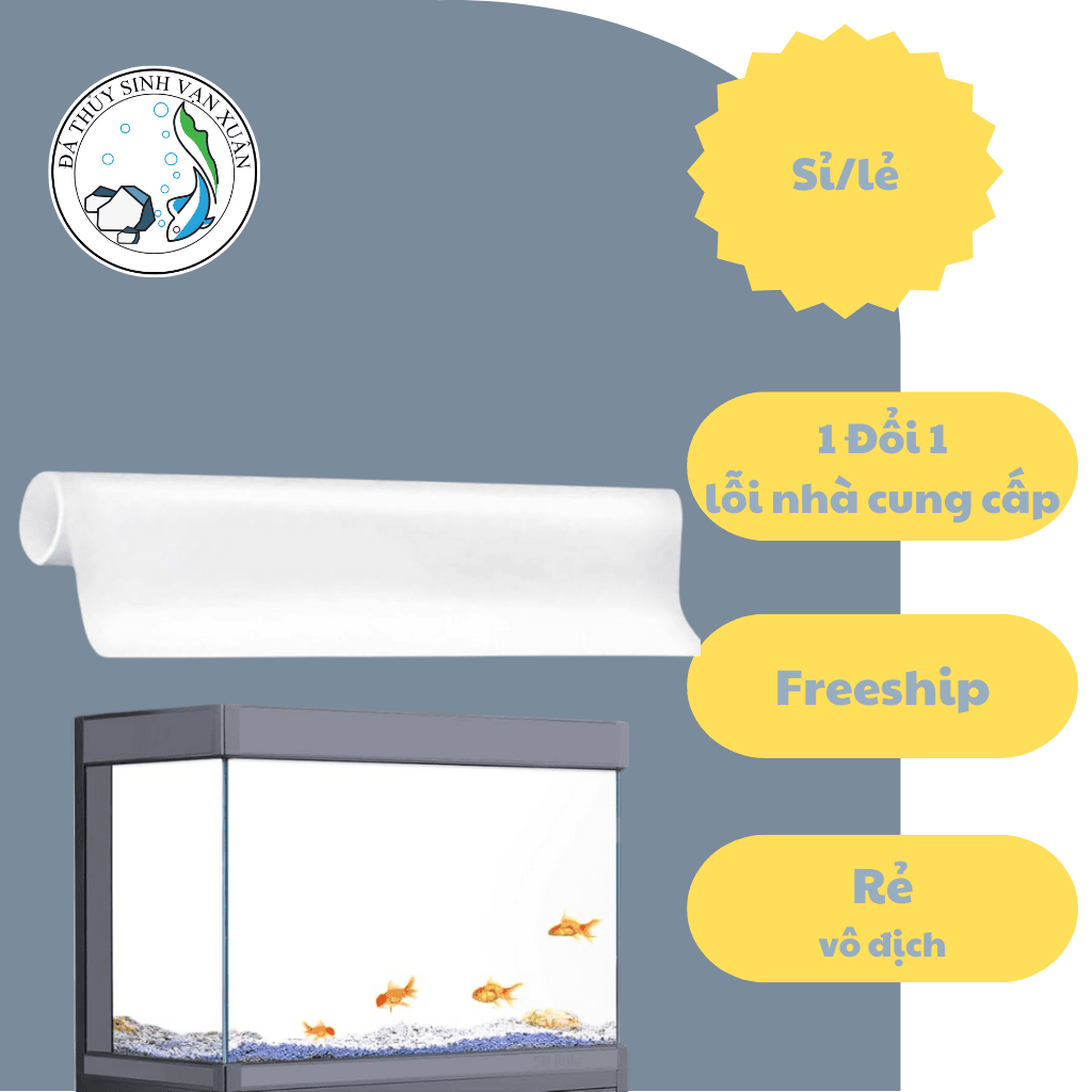 Decal Dán Bể Cá hay còn được gọi là phông, tranh nền dán bể cá. Đây là sản phẩm được thiết kế 1 bề mặt có họa tiết giống với môi trường sống/biển của cá. Sản phẩm có kết cấu cũng giống như các loại decal chống nắng, decal dán kính mờ,… bao gồm 1 mặt họa tiết được bôi sẵn 1 lớp chất keo bám dính, ở ngoài cùng sẽ là 1 lớp giấy bảo vệ.