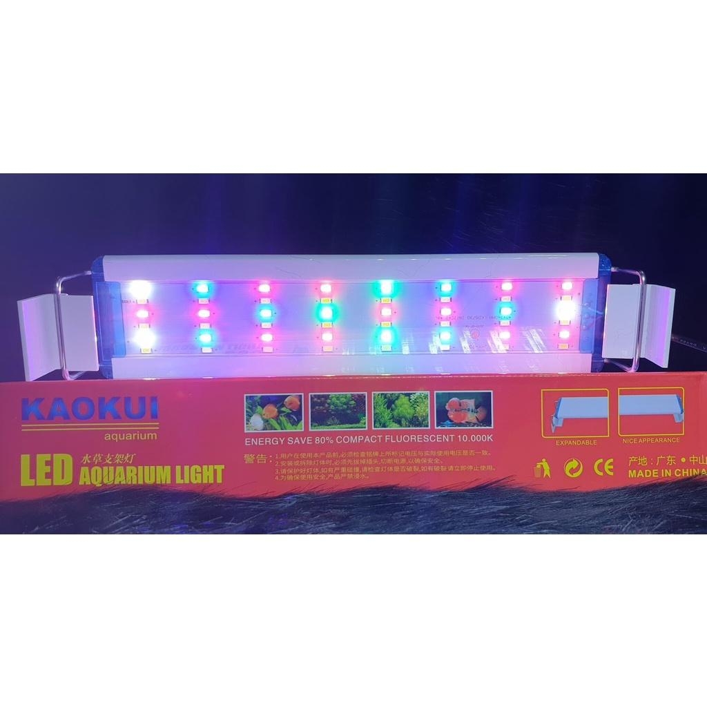 KAOKUI - LED Light Aquarium ở phiên bản mới được hãng nâng cấp lên tới 6 dãy LED trắng 5730 giúp diện tích chiếu sáng bao phủ tốt hơn. Tuy là dòng đèn LED thủy sinh giá rẻ nhưng đèn cũng được sử dụng các linh kiện tốt giúp đèn có chất lượng và độ bền rất cao.