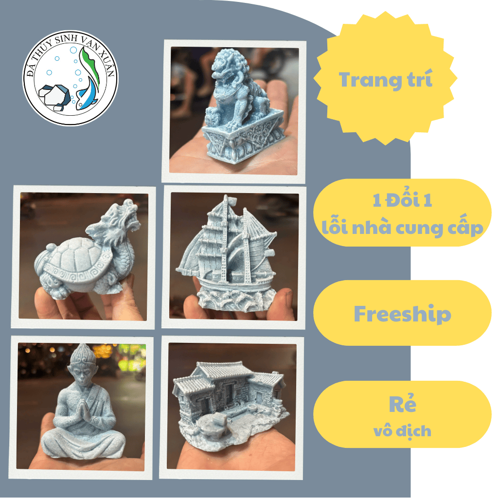 Tượng trang trí thủy sinh không chỉ giúp hồ cá thêm sinh động, có chiều sâu mà còn mang ý nghĩa phong thủy – tài lộc – may mắn cho gia chủ. Các mẫu tượng được thiết kế tỉ mỉ, phù hợp với nhiều phong cách hồ khác nhau: từ tự nhiên, cổ trang đến phong thủy Á Đông.