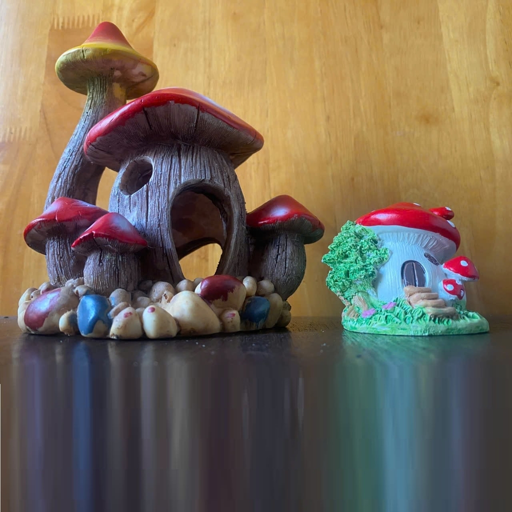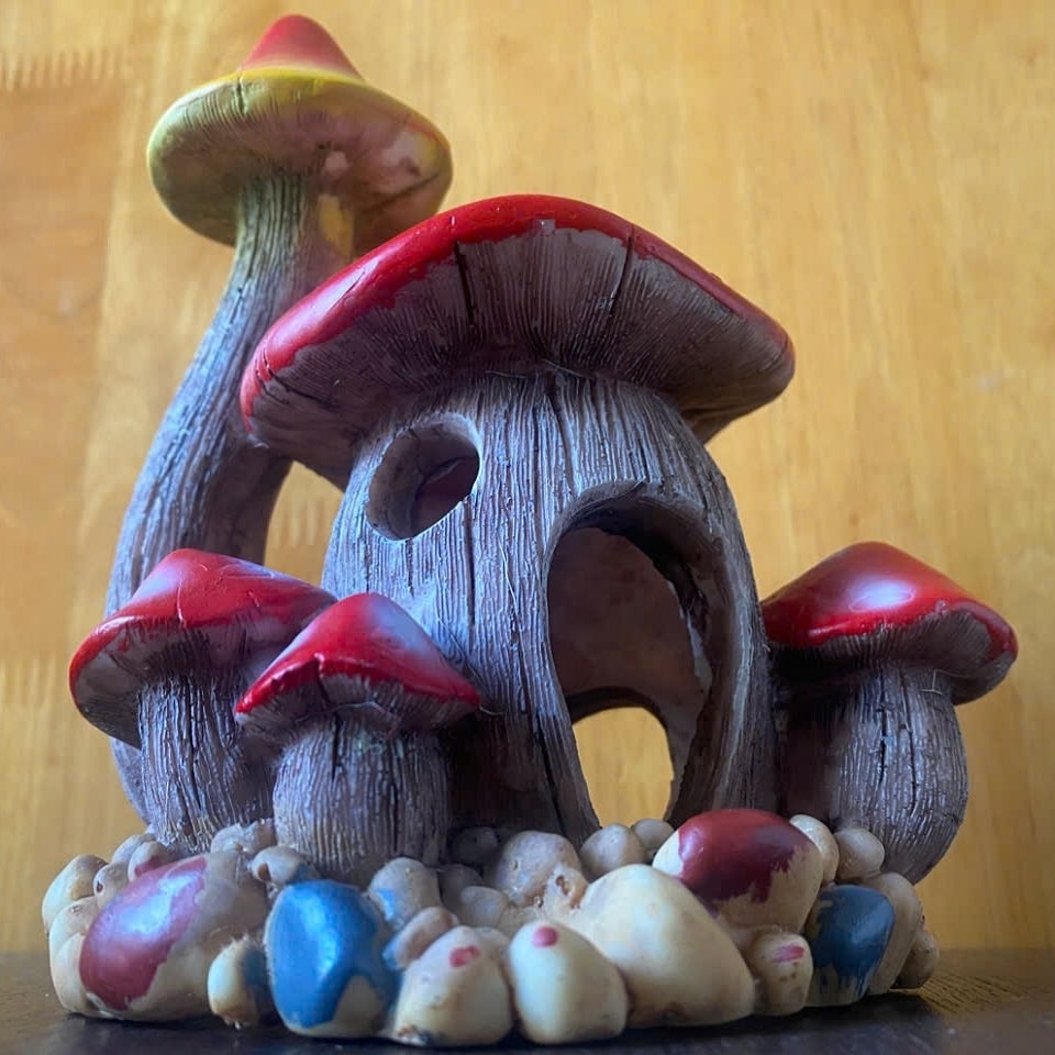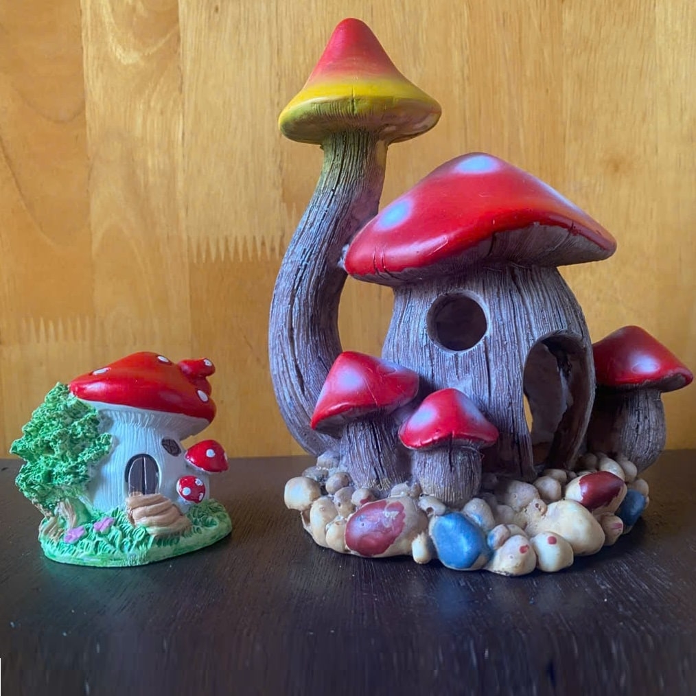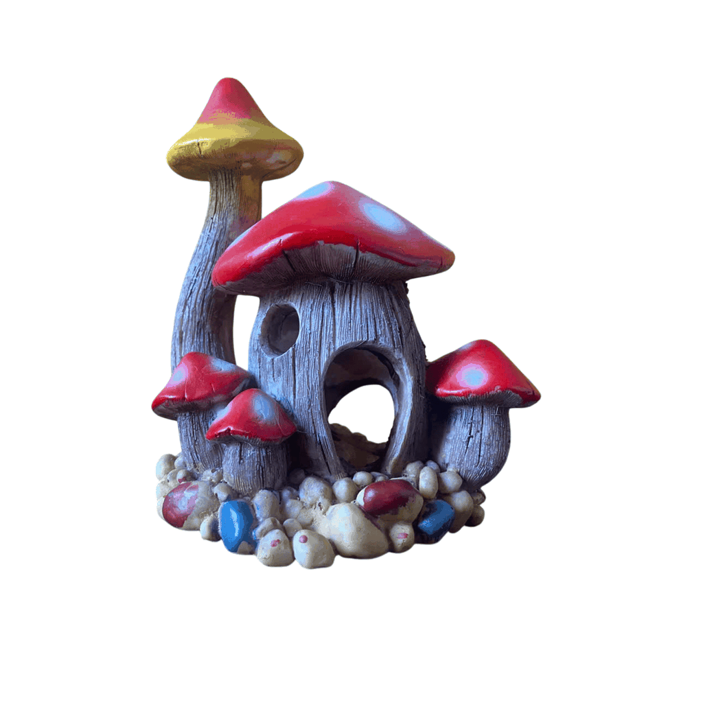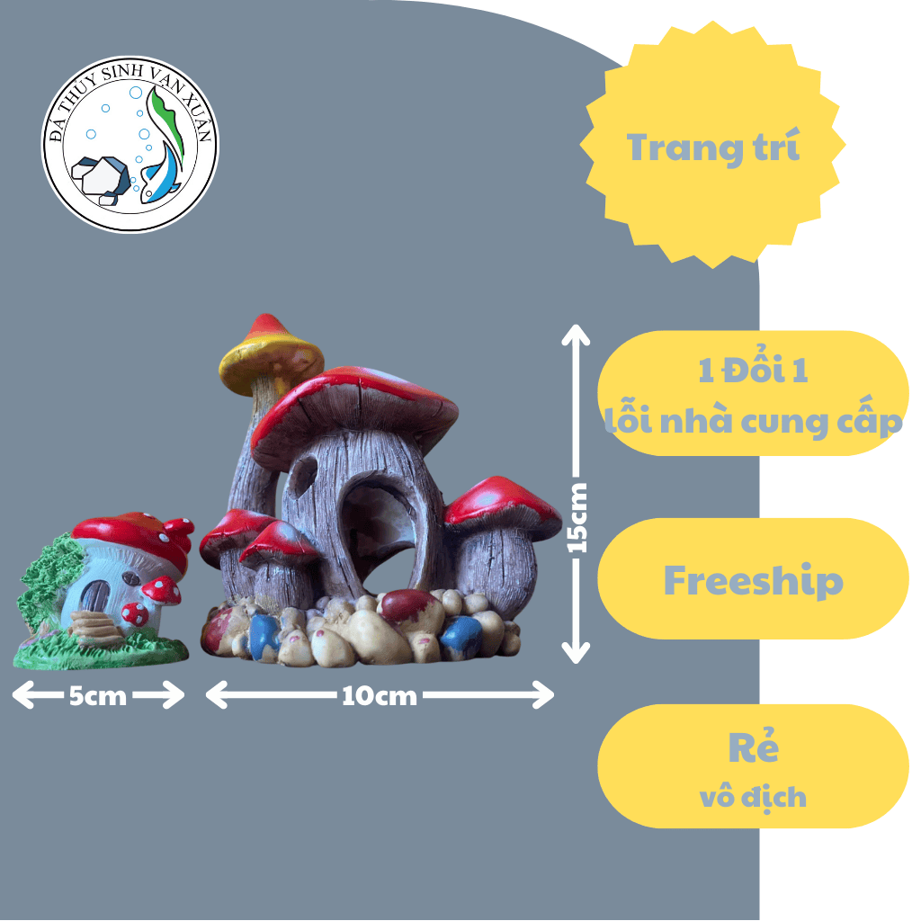 Tượng ngôi nhà nấm được thiết kế ngộ nghĩnh, đáng yêu, tạo điểm nhấn sinh động cho hồ cá và bể thủy sinh. Với hình dáng ngôi nhà nhỏ xinh cùng mái nấm nhiều màu sắc, sản phẩm mang đến không gian cổ tích, giúp hồ cá trở nên nổi bật và tự nhiên hơn.
