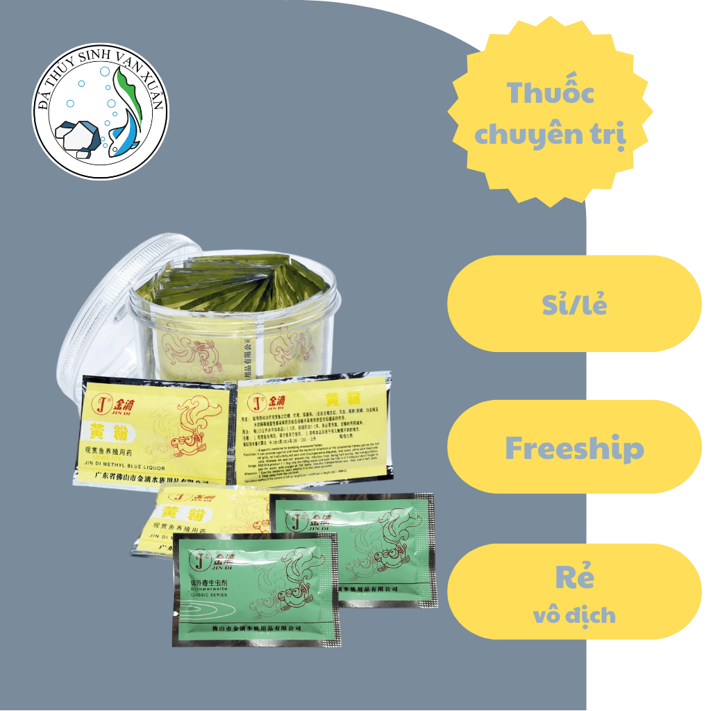 Thuốc Cá Jindi Trị Bệnh Cho Cá Kiểng, Cá Cảnh được sử dụng cho cá cảnh cả trong nước biển và nước ngọt. Nó có tác dụng chữa bệnh tất cả các loại bệnh cho cá gây ra từ vi khuẩn như: bệnh trùng mỏ neo, đốm trắng, thịt thối, bã nhờn, mờ mắt, mang cá thối, vi khuẩn nhung mao. Tác dụng đặc biệt nhất vẫn là khử trùng cho cá.
